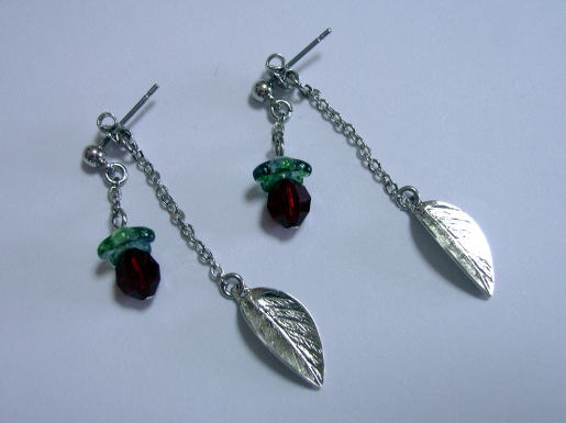 キャッチ部分に大好きな葉っぱのビーズを下げました。最近のお気に入りです。
