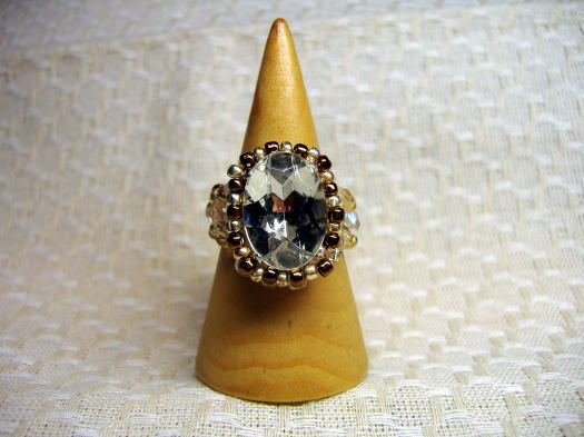 キラキラにつられて買ったビーズです。まわりを丸小と3mmのFPで編みました。